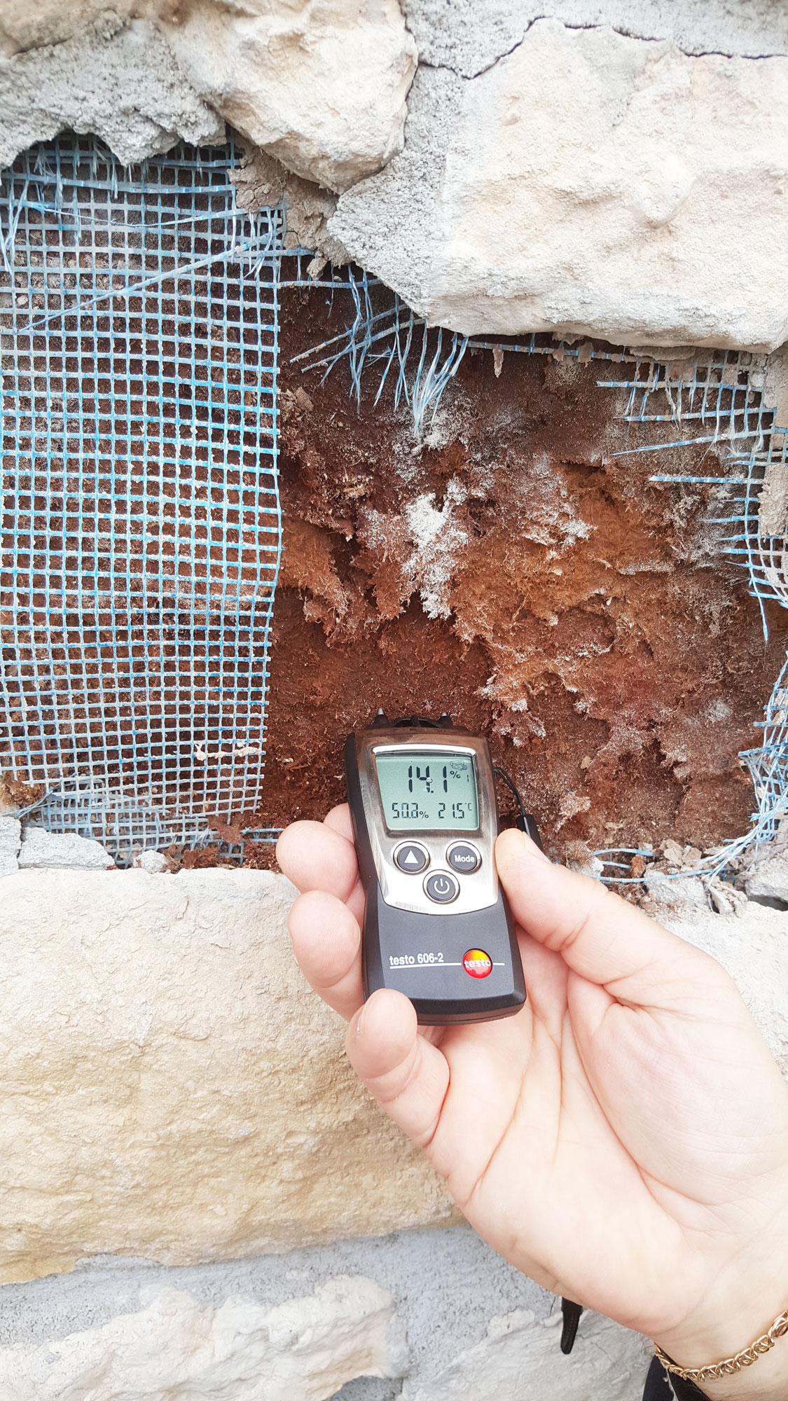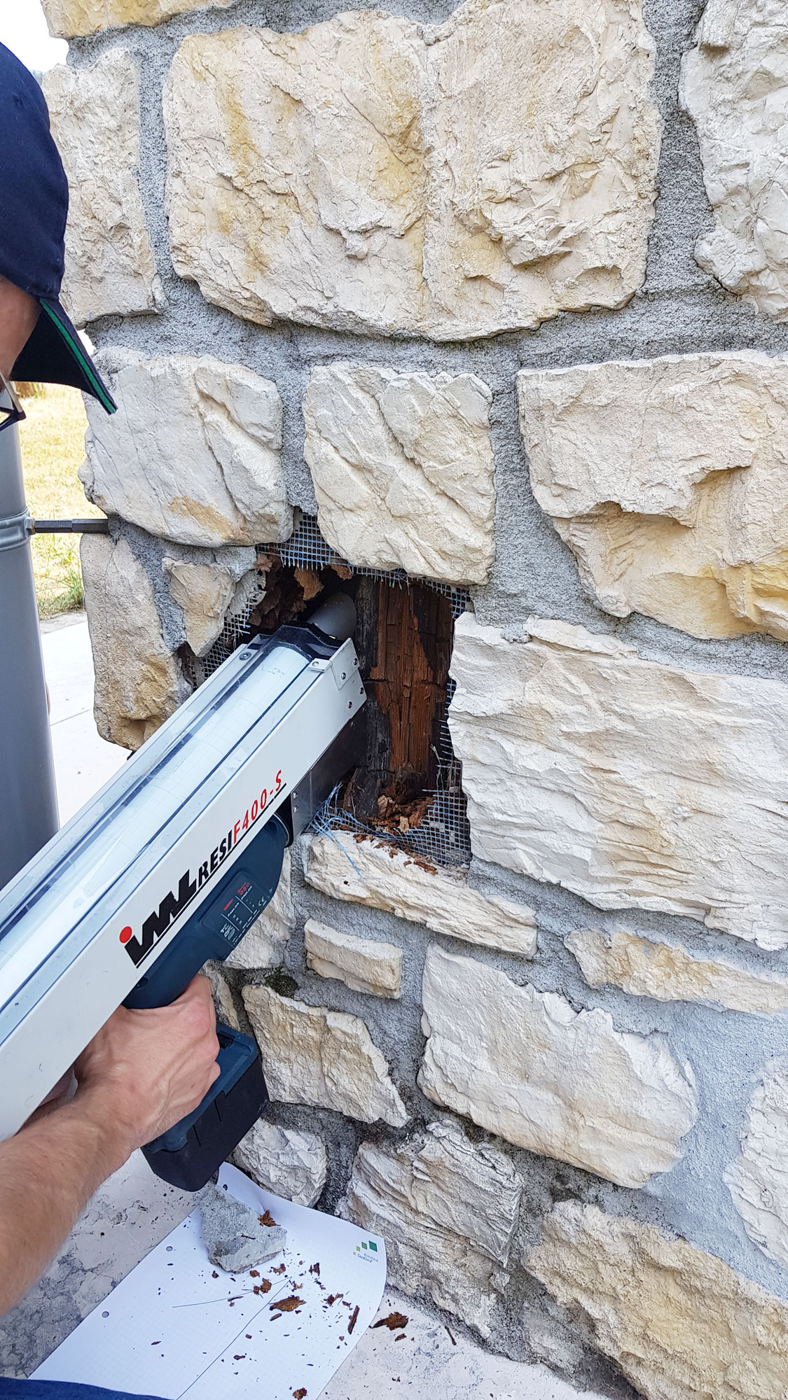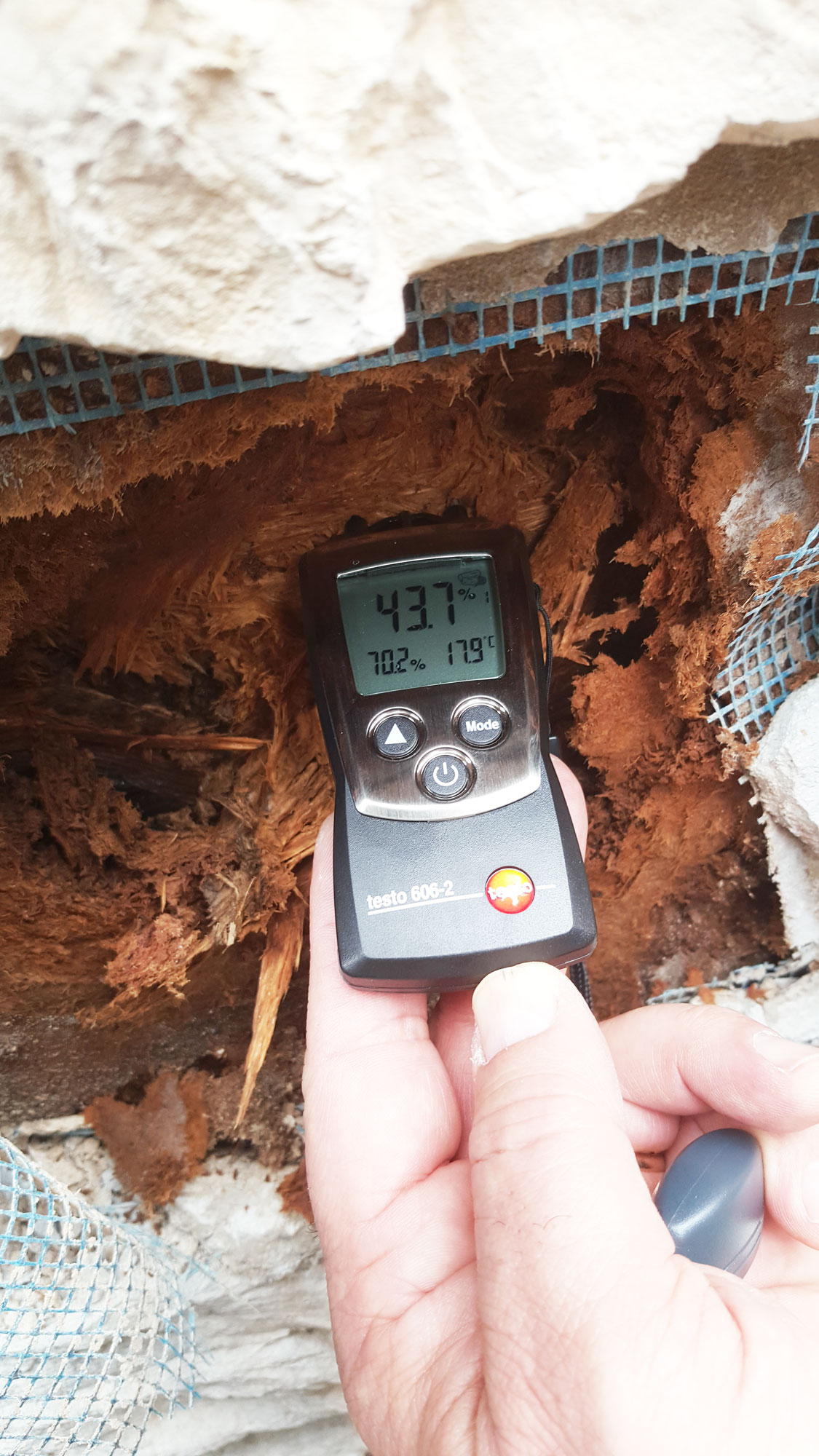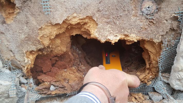 Si sono susseguite poi diverse diagnosi invasive (distruttive) con relative verifiche termo-igrometriche e verifiche mediante resistograph della prestazione strutturale dei punti rilevati e analizzati nella precedente campagna termografica.