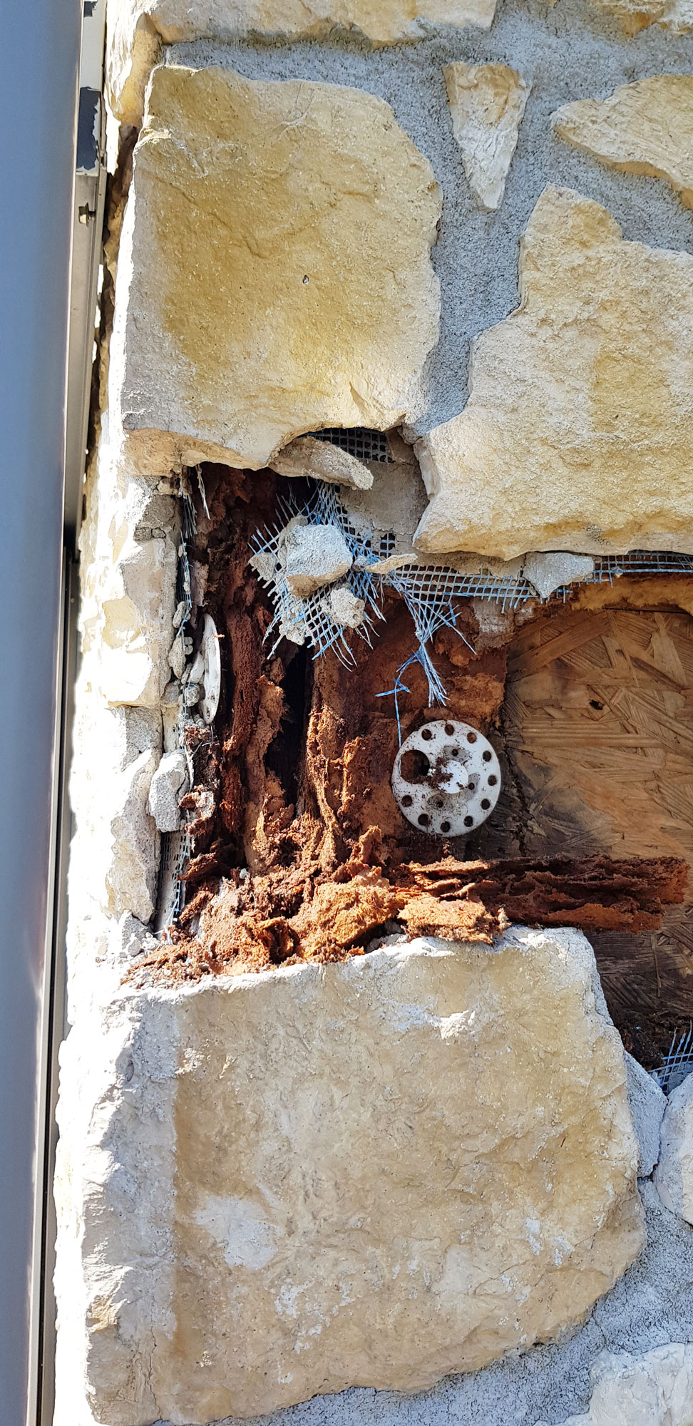 Le criticità lamentate da parte della proprietà erano rappresentate da:- presenza di spore sulle facciate esterne (di colore marrone e giallo a seconda dei punti)