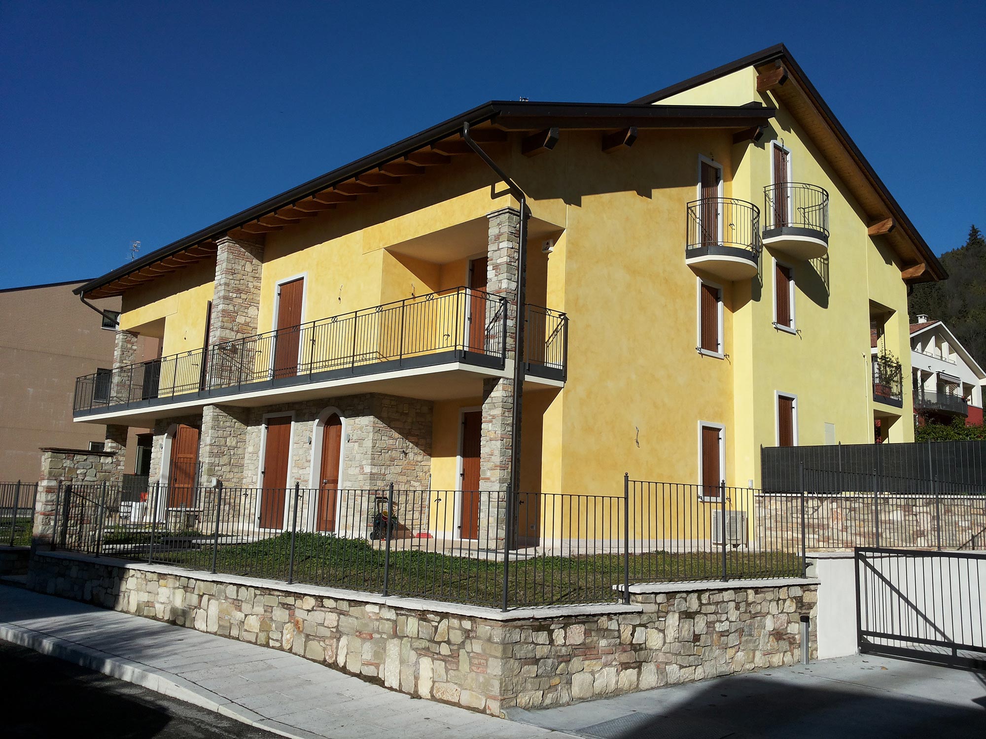 Immersa nelle colline della Valpolicella troviamo la bifamiliare certificata CasaClima classe A.Particolare attenzione con studi preliminari con riferimento a pareti isolate e rivestite in pietra locale. Ottimi i risultati ottenuti durante le prove di tenuta all’aria tramite il blower door test. Massima soddisfazione dei committenti.